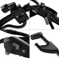 Благодаря новому дизайну держателя Thule ProRide 598, который теперь обеспечивает полный обхват рамы, конструкция стала еще более устойчивой. Колеса надежно фиксируются диагональными ремнями, предотвращая колебания велосипеда во время транспортировки. Проконтролировать давление на раму при фиксировании поможет ручка вращения с индикатором — как только велосипед надежно закреплен, индикатор издает щелчок.