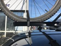 Крепление для перевозки велосипеда нашего собственного производства (INTER). Крепление может быть установлено на прямоугольные или аэродинамические дуги багажника. Велокрепление упаковано в картонную коробку, что препятствует повреждению при транспортировке, а также делает удобным демонстрацию товара покупателю. При производстве велокрепления использованы только самые качественные материалы. Перед поступлением в продажу велокрепление было неоднократно испытано на практике и показало себя наилучшим образом. В качестве дополнения Вы сможете приобрести запирающее устройство для велокрепления (барашек с замком) по цене 500руб. Ниже представлены фото и видео велокрепления, установленного на аэродинамические дуги багажника |