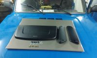 Дизайн и функциональность. Внешний вид накладок разрабатывался в соответствии с общей концепцией дизайна автомобиля LADA 4x4. Поэтому данные изделия органично вписываются в экстерьер данного автомобиля, придавая ему новые оригинальные черты. Плюс ко всему данные накладки отлично справляются с защитной функцией, не допуская свободного проникновения посторонних предметов, снега и воды в отопительную систему, как при движении автомобиля (входное отверстие расположено против хода), так и при стоянке (сверху накладка капота полностью перекрывает решетку). При необходимости дополнительной очистки кузова, данные элементы легко демонтируются и устанавливаются вновь, что было бы невозможно при неразъемном соединении.