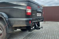 Фаркоп под квадрат или, как его еще называют, американский фаркоп на УАЗ пикап 2008- / УАЗ Профи 2017-, очень удобен в эксплуатации, благодаря быстросъемной части, при этом рама и кронштейн фаркопа скрыты за задним бампером и не выступают за габариты автомобиля. В нашем интернет-магазине вы можете купить фаркоп под американский квадрат, рама которого устанавливается в штатные места, предусмотренные заводом-изготовителем. Выход из рамы представляет собой толстостенную трубу с квадратным сечением и сквозным отверстием для стопорного пальца тягово-сцепного устройства. Диаметр шара — 50 мм.